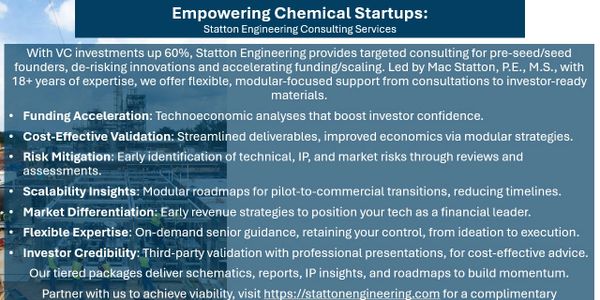Early-stage chemical and process technology ventures face unique challenges: limited resources, high technical uncertainty, and the need to convince investors quickly. Our streamlined package addresses these directly by delivering credible, third-party validated materials that de-risk your opportunity and accelerate fundraising.